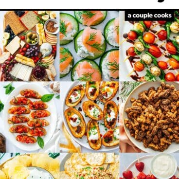Some of the party food ideas below are fresh and nourishing, while others are rich and cheesy. But all of these finger foods have all been favorites with the crowd! Let’s get to the recipes, shall we?